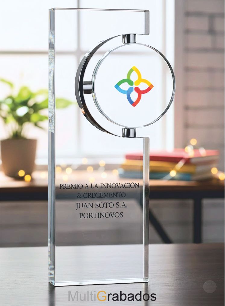 El Trofeo Cristal Meridian redefine la elegancia con un diseño vanguardista que capta todas las miradas. Fabricado íntegramente en cristal óptico de alta calidad, ofrece una transparencia superior y un brillo excepcional que realza cualquier logotipo o texto grabado. Su estructura única presenta una pieza circular suspendida dentro de un marco rectangular estilizado, simbolizando enfoque y perfección. Con una altura de 26 cm, es un galardón imponente ideal para premios a la innovación, reconocimientos corporativos o hitos empresariales. Incluye estuche de presentación de lujo y ofrece personalización mediante grabado láser de alta precisión.