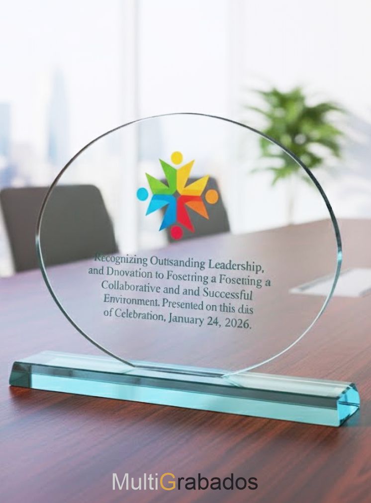 El Trofeo de Cristal Orbital redefine la elegancia en los reconocimientos corporativos. Su diseño circular simboliza la unidad, la perfección y el éxito continuo. Fabricado con cristal óptico de alta transparencia y una base sólida que garantiza estabilidad y presencia, es la pieza perfecta para destacar liderazgos excepcionales o hitos empresariales. Cada unidad permite un grabado personalizado de alta definición, integrando logos a color y textos extensos con una claridad inigualable. Espesor del cristal 10mm.